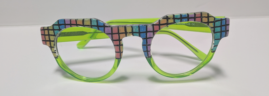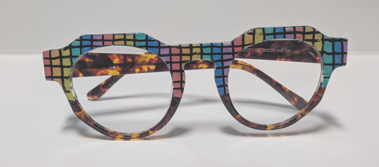 Unique one of a kind glasses frames upcycled into original artwork by Ivy. Each pair of glasses frames are painted and sealed in acrylic in colorful designs.